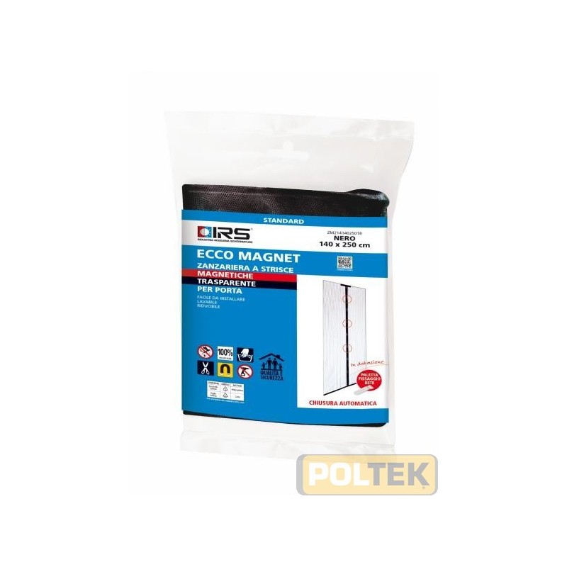 Zanzariera Magnetica con applicazione mediante velcro ideale per porte e balconi formata da 2 pannelli di 70cm. x 250 cm che si uniscono al centro tramite 10 magneti per coprire dimensioni fino a 140 cm. x 250 cm.