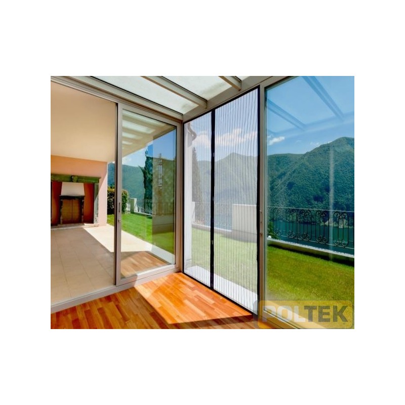 Zanzariera Magnetica con applicazione mediante velcro ideale per porte e balconi. Formata da 2 pannelli di 70cm x 250 cm che si uniscono al centro tramite 10 magneti per coprire dimensioni fino a 140 cm. x 250 cm.