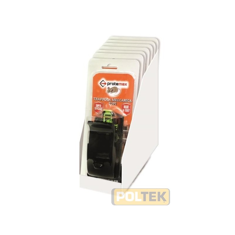 Indicato per: trappola meccanica per topi. È facile da usare, con un particolare metodo sicuro per caricare l'esca gel mentre la trappola è ancora in modalità "riposo". Deve essere utilizzata all'interno di un'apposita stazione esca per trappole meccaniche disponibile in commercio. Si consiglia l'utilizzo di PROTEMAX contenitore esche ratti MAXI.