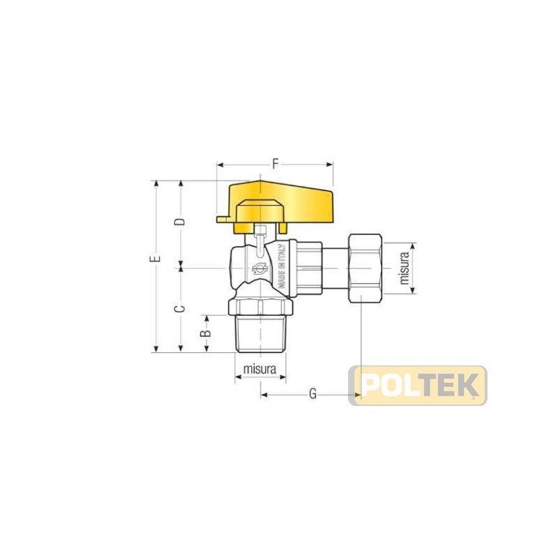 Rubinetto a sfera squadra Maschio ISO 7- Dado girevole Femmina ISO 228, con levetta alluminio gialla.
