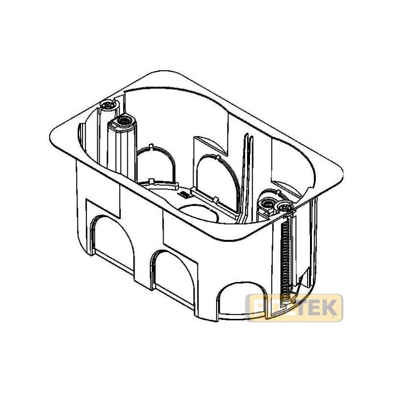 Cassetta da incasso per pareti in cartongesso. In tecnopolimero non propagante la fiamma. Glow-Wire test 850° Temperatura di installazione -15°C +60°C Standard CEI EN 60670-1