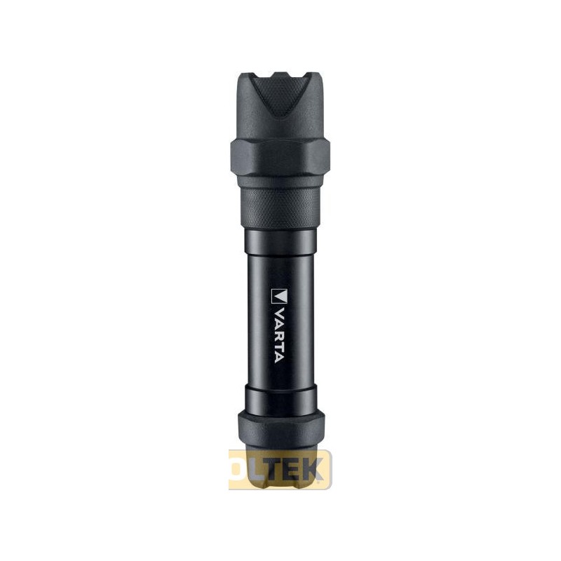 Torcia estremamente robusta (test caduta 9m) con elementi in gomma antiurto Corpo realizzato in alluminio anodizzato di tipo II Lente e riflettore infrangibili Resistente agli urti IK08 (IEC 62262) Resistente all'acqua e alla polvere (IP67) LED extra luminoso ad alta prestazione 2 livelli di luminosità: alta e bassa