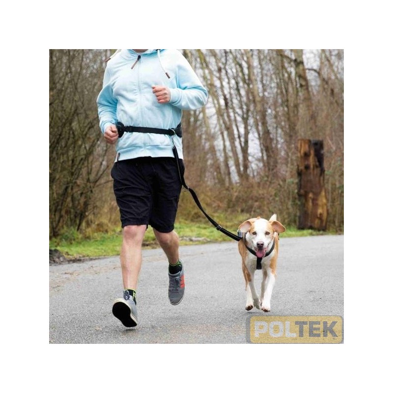 Cintura in vita con guinzaglio per cani medi e grandi. in particolare per fare canicross, andare a correre, camminare, ecc. Prodotto molto resistente grazie allo speciale sistema di chiusura che riduce la tensione. Di grande comfort grazie alla spessa imbottitura in neoprene. L'ammortizzatore assorbe gli strappi improvvisi del cane. La maniglia permette di utilizzarla come un normale guinzaglio. Con bordo e bande riflettenti. In fettuccia resistente.