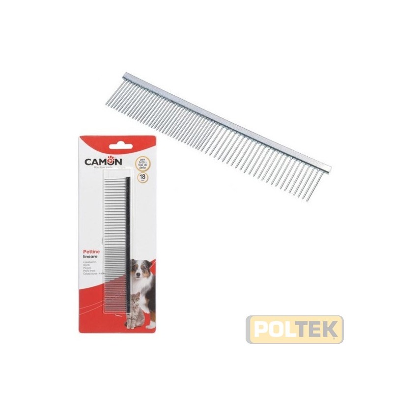 Pettine lineare cromato della lunghezza di 18 cm, ottimo per tutti i tipi di pelo di cani e gatti.