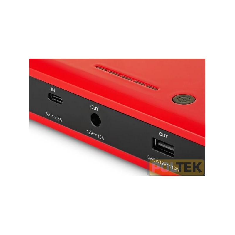 Caratteristiche: avviatore di emergenza a 12V ultracompatto; powerbank con uscita USB A (Quick Charge) e uscita a 12V; potente fonte di illuminazione con 2 luci led ad alta intensità e 4 modalità di funzionamento; visualizzazione a led del livello di carica. Completo di cavi di avviamento, cavo di collegamento e spina accendisigari con 2 prese: USB A e USB C.
