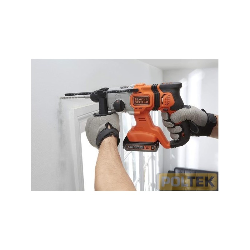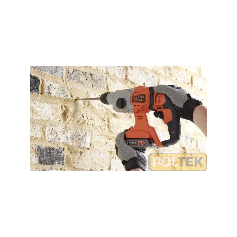 Caratteristiche tecniche Libertà della batteria - Parte della piattaforma 18V POWERCONNECT™ per lavorare a lungo senza i vincoli del filo Pronto a lavorare quando lo sei tu grazie alla tecnologia Litio che evita lo scaricamento automatico della batteria 3 modalità di lavoro - Cambia velocemente tra le funzioni di foratura, foratura con percussione e scalpellatura per soddisfare tutte le tue esigenze! Potente energia del colpo sprigionata: 1.2J per realizzare le tue lavorazioni in semplicità Impugnatura laterale regolabile e removibile per la massima comodità in uso, ideale per l'utilizzo sia con una che con due mani Luce LED integrata per illuminare l'area di lavoro e garantire un'ottima visibilità