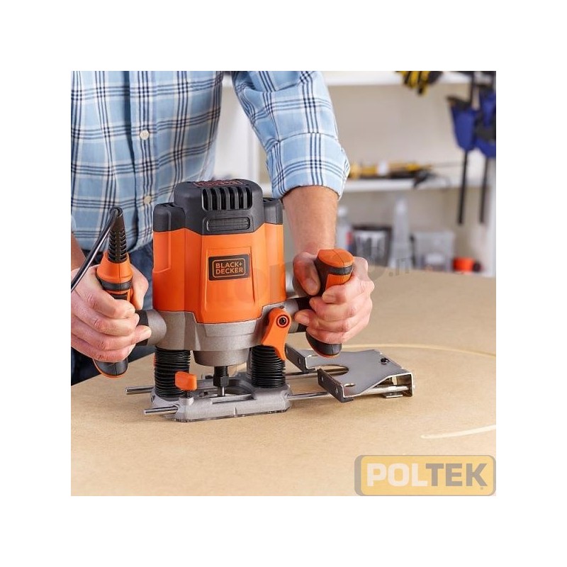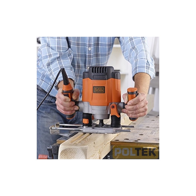 Motore da 1200W per una maggior durata ed un alto livello di prestazioni 3 pinze per tutti i tipi di codoli al di sotto di 12mm. Blocco dell'interruttore per maggiore sicurezza Blocco dell'albero per un rapido cambio del coltello La velocità variabile dà all'utente un maggior controllo per evitare di bruciare il materiale da lavorare. Grandi impugnature laterali per una presa sicura e maggiore sicurezza e controllo Alloggio piatto del motore per un facile cambio della fresa