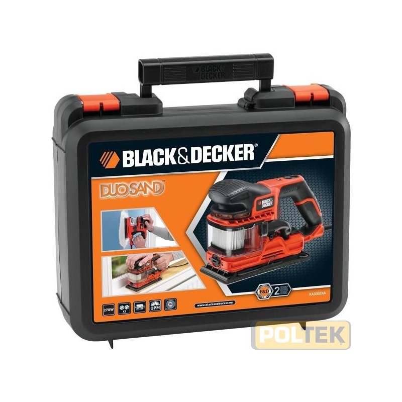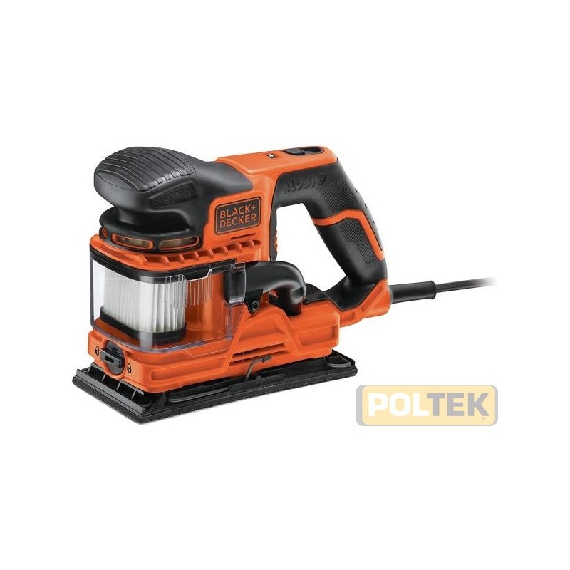 Dati tecnici: La prima levigatrice al mondo* da 1/3 foglio con un doppio sistema di ventilazione per la raccolta della polvere, per una levigatura facile, veloce e con meno sporco EFFICACE: raccoglie 3 volte in più di polvere** VELOCE: Meno polvere significa meno sporco e meno pulizia da fare Potente motore da 270W, idale per tutte le principali applicazioni di levigatura Contenitore trasparente in policarbonato, comodo e resistente Facile estrazione del canestro Fissaggio carta abrasiva standard o con velcro Comoda impugnatura ergonomica a due posizioni La prima levigatrice al mondo* da 1/3 foglio con un doppio sistema di ventilazione per la raccolta della polvere ** Rispetto alla levigatrice KA320 di BLACK+DECKER™ da 1/3 foglio testata su superfici verniciate