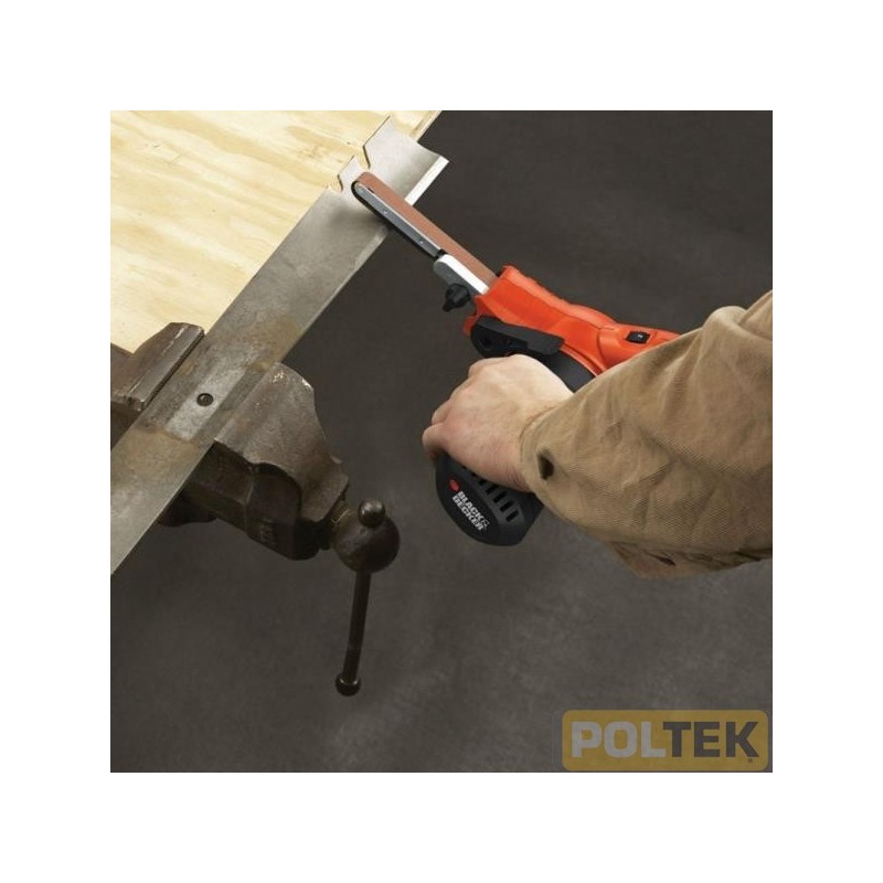 Nastro levigatore da 13mm, ideale per le operazioni di levigatura, modellatura, affilatura e per la rimozione della ruggine Velocità variabile per un controllo ed una finitura ottimale nella levigatura di legno, metallo, piastrelle in ceramica, muratura, intonaco e plastica Azione ciclonica e scomparto raccoglipolvere per una superficie di lavoro sempre pulita