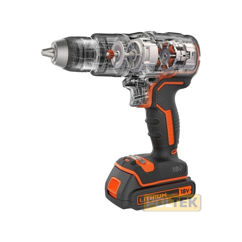 Caratteristiche tecniche Il motore Brushless (senza spazzole) consente fino al 50% di maggior potenza e fino al 25% in più di autonomia rispetto al modello EGBL188 di BLACK+DECKER (dotato di motore a spazzole) Il motore Brushless consente un minor deterioramento e una maggior durata del prodotto Batteria 18V per affrontare con sicurezza forature ed avvitature di alta intensità 2 velocità meccaniche per avvitature accurate e forature più rapide Batteria al Litio che conserva la carica fino a 18 mesi di non utilizzo Batteria con aggancio a slitta per una rapida sostituzione ed una tenuta più salda