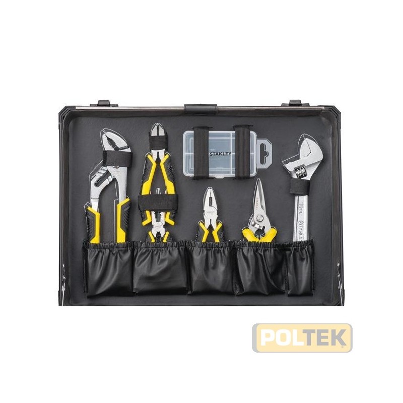 TOP: 1 Pinza poligrip 250mm - 1 Pinza universale 160mm 1 Tronchese diagonale 160mm - 1 Cesoia uso leggero 1 Chiave regolabile a rullino 250mm 1 Porta minuteria in plastica - 1 Pinza becchi lunghi