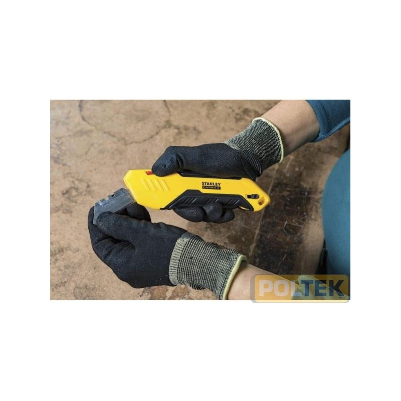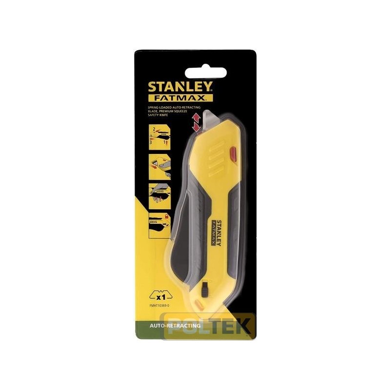 Rientro della lama completamente automatico - miglior ergonomia rispetto al pulsante superiore Lama di sicurezza - il prodotto è fornito con una lama con bordi arrotondati Cambio lama rapido, senza l'uso di utensili per maggior efficienza Impugnatura bi-material, per maggior controllo e anti scivolamento Leggero, riduce la fatica dell'operatore rispetto ai coltelli in metallo più pesanti. Leva di bloccaggio - la lama può essere bloccata per prevenire infortuni Anello per laccetto - per maggior sicurezza o per appendere il coltello.